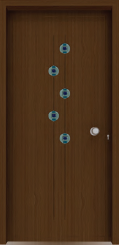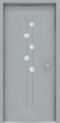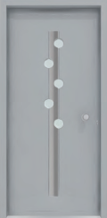 Painel de porta composto por 2 chapas de alumínio termolacado e poliuretano injetado, formando uma estrutura estratificada (sanduíche) com espessura standard de 24mm.