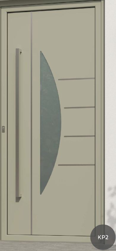 Painel de porta composto por 2 chapas de alumínio de 2,5mm de espessura com poliuretano injetado entre ambas, à densidade de 120kg/m3, com ou sem vidro.
