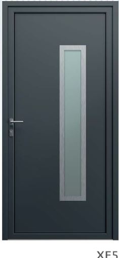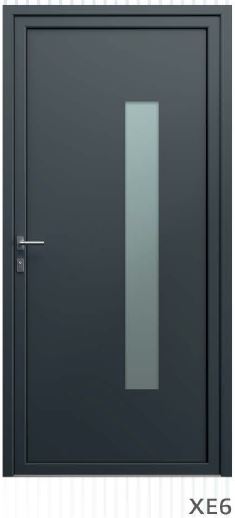​​​​​​Painel de porta composto por 2 chapas de alumínio de 2,5mm de espessura com poliuretano injetado entre ambas, à densidade de 120kg/m3, com ou sem vidro.