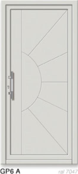 ​​​​​​Painel de porta composto por 2 chapas de alumínio de 2,5mm de espessura com poliuretano injetado entre ambas, à densidade de 120kg/m3, com ou sem vidro.
