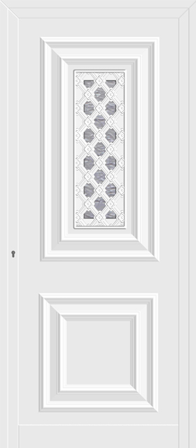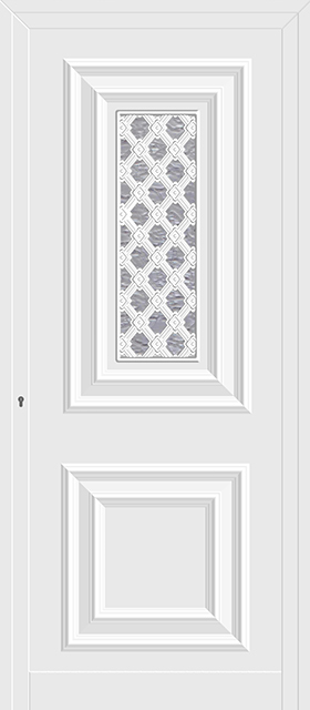 Painel de porta composto por 2 chapas de alumínio de 1,5/1,8mm de espessura, termolacado e poliuretano injetado, formando uma estrutura estratificada (sanduíche) com espessura padrão de 20/24mm.