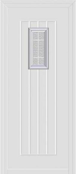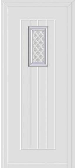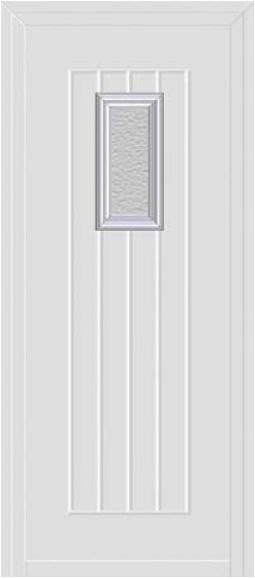 Painel de porta composto por 2 chapas de alumínio de 1,5/1,8mm de espessura, termolacado e poliuretano injetado, formando uma estrutura estratificada (sanduíche) com espessura standard de 20/24mm.