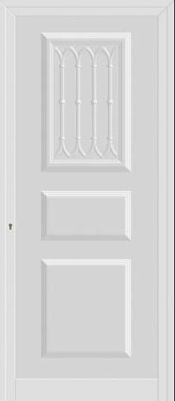 Painel de porta composto por 2 chapas de alumínio de 1,5/1,8mm de espessura, termolacado e poliuretano injetado, formando uma estrutura estratificada (sanduíche) com espessura standard de 20/24mm.