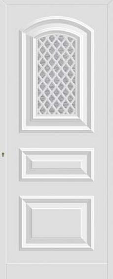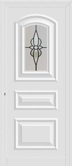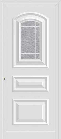 Painel de porta composto por 2 chapas de alumínio de 1,5/1,8mm de espessura, termolacado e poliuretano injetado, formando uma estrutura estratificada (sanduíche) com espessura standard de 20/24mm.