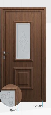 Painel de porta composto por 2 chapas de alumínio de 1,8mm de espessura com poliuretano injetado entre ambas, à densidade de 120kg/m3, com ou sem vidro.