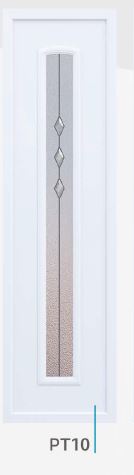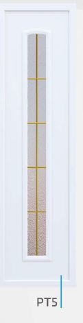 Painel de porta composto por 2 chapas de alumínio de 1,8mm de espessura com poliuretano injetado entre ambas, à densidade de 120kg/m3, com ou sem vidro.