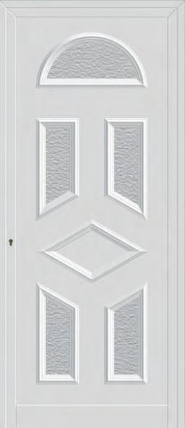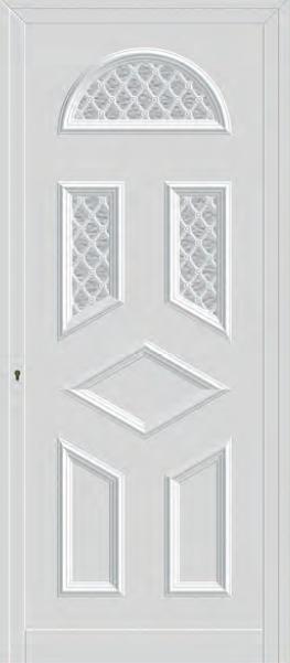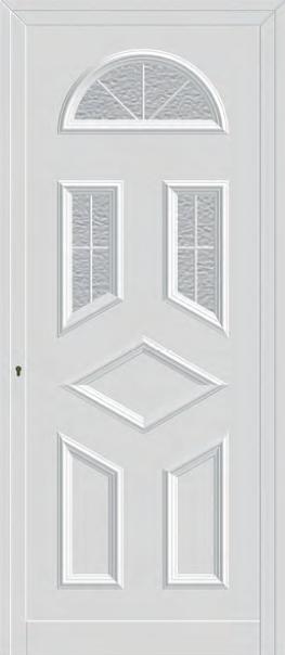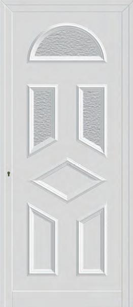 Painel de porta composto por 2 chapas de alumínio termolacado e poliuretano injetado, formando uma estrutura estratificada (sanduíche) com espessura standard de 20mm.