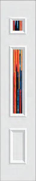 Painel de porta composto por 2 chapas de alumínio termolacado e poliuretano injetado, formando uma estrutura estratificada (sanduíche) com espessura standard de 20mm.