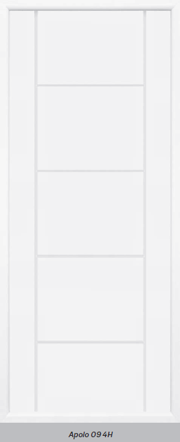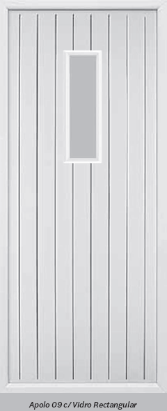 Painel de porta composto por 2 chapas de alumínio de 1,8mm de espessura, com enchimento por injecção de poliuretano de alta densidade.