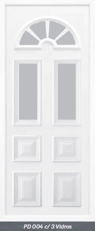 Painel de porta composto por 2 chapas de alumínio de 1,8mm de espessura, com enchimento por injecção de poliuretano de alta densidade.