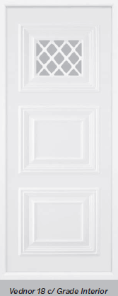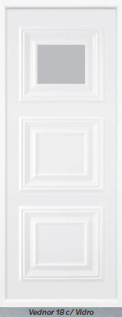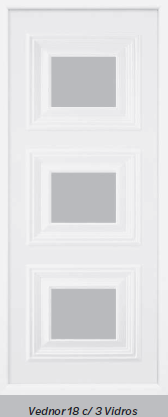 Painel de porta composto por 2 chapas de alumínio de 1,8mm de espessura, com enchimento por injecção de poliuretano de alta densidade.