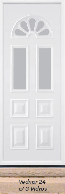 Painel de porta composto por 2 chapas de alumínio de 1,8mm de espessura, com enchimento por injecção de poliuretano de alta densidade.