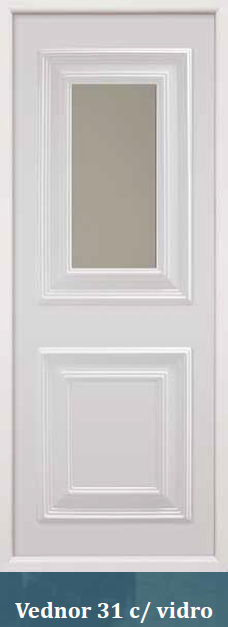 Painel de porta composto por 2 chapas de alumínio de 1,8mm de espessura, com enchimento por injecção de poliuretano de alta densidade.
