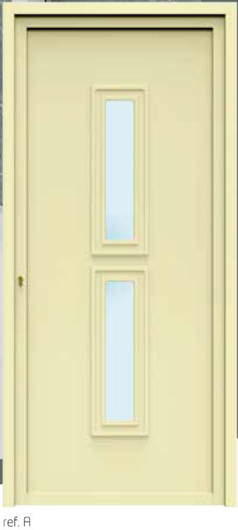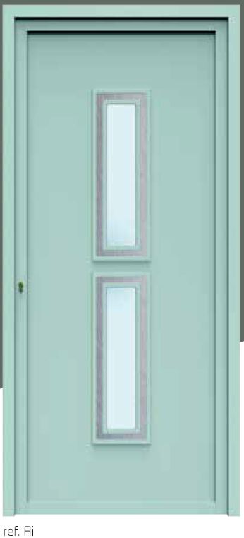 Os painéis de portas de alumínio podem ser fornecidos nos mais diversos tipos de acabamentos: anodizados, lacados de imitação madeira, película de PVC (RENOLITE) e cores Ral.
