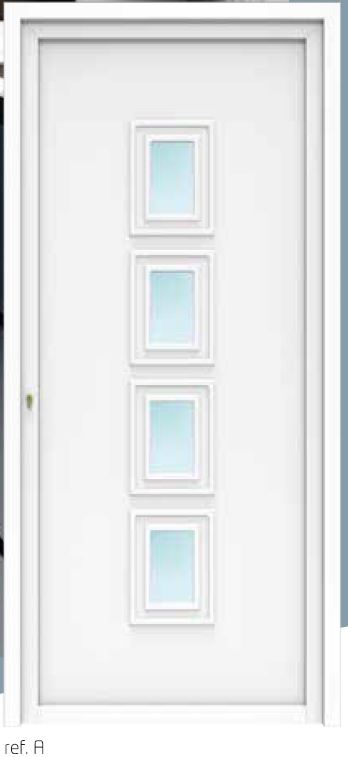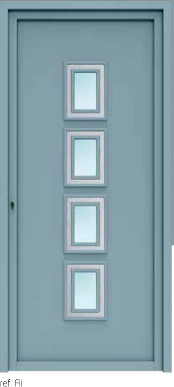 Os painéis de portas de alumínio podem ser fornecidos nos mais diversos tipos de acabamentos: anodizados, lacados de imitação madeira, película de PVC (RENOLITE) e cores Ral.