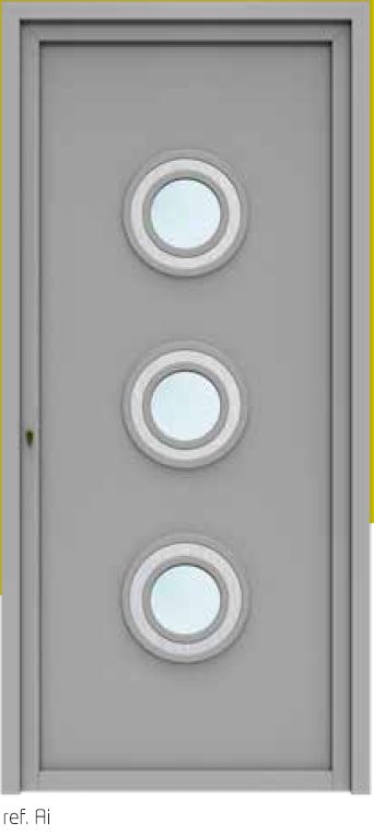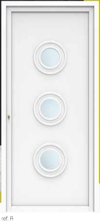 Os painéis de portas de alumínio podem ser fornecidos nos mais diversos tipos de acabamentos: anodizados, lacados de imitação madeira, película de PVC (RENOLITE) e cores Ral.