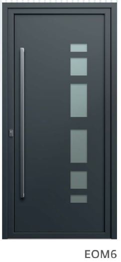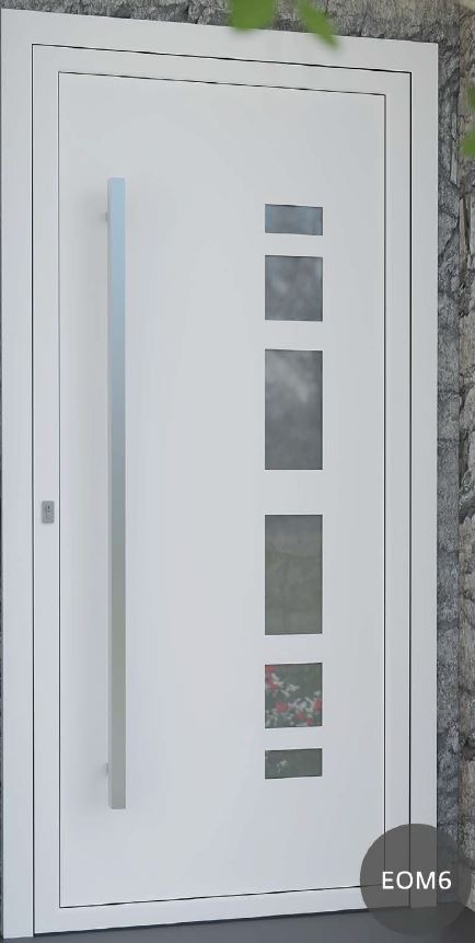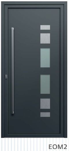 ​​​​​​Painel de porta composto por 2 chapas de alumínio de 2,5mm de espessura com poliuretano injetado entre ambas, à densidade de 120kg/m3, com ou sem vidro.